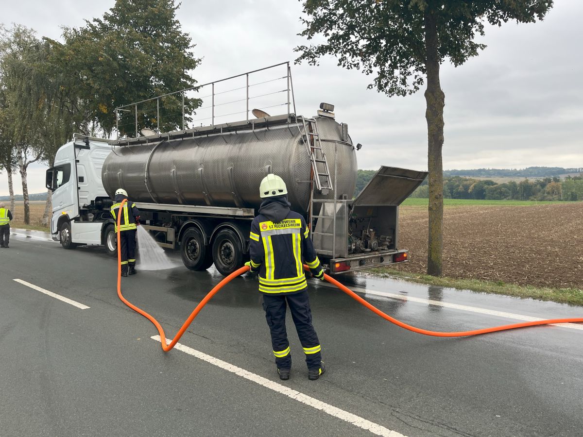 Ein Fahrzeug hatte auf der B 252 zwischen Peckelsheim und Niesen Ladung verloren. Da es sich dabei um Speisereste handelte, alamierte die Polizei den Löschzug Peckelsheim im Rahmen einer Amtshilfe nach. Die Straße wurde unter halbseitiger sowie anschließend kurzzeitiger Vollsperrung gereinigt.