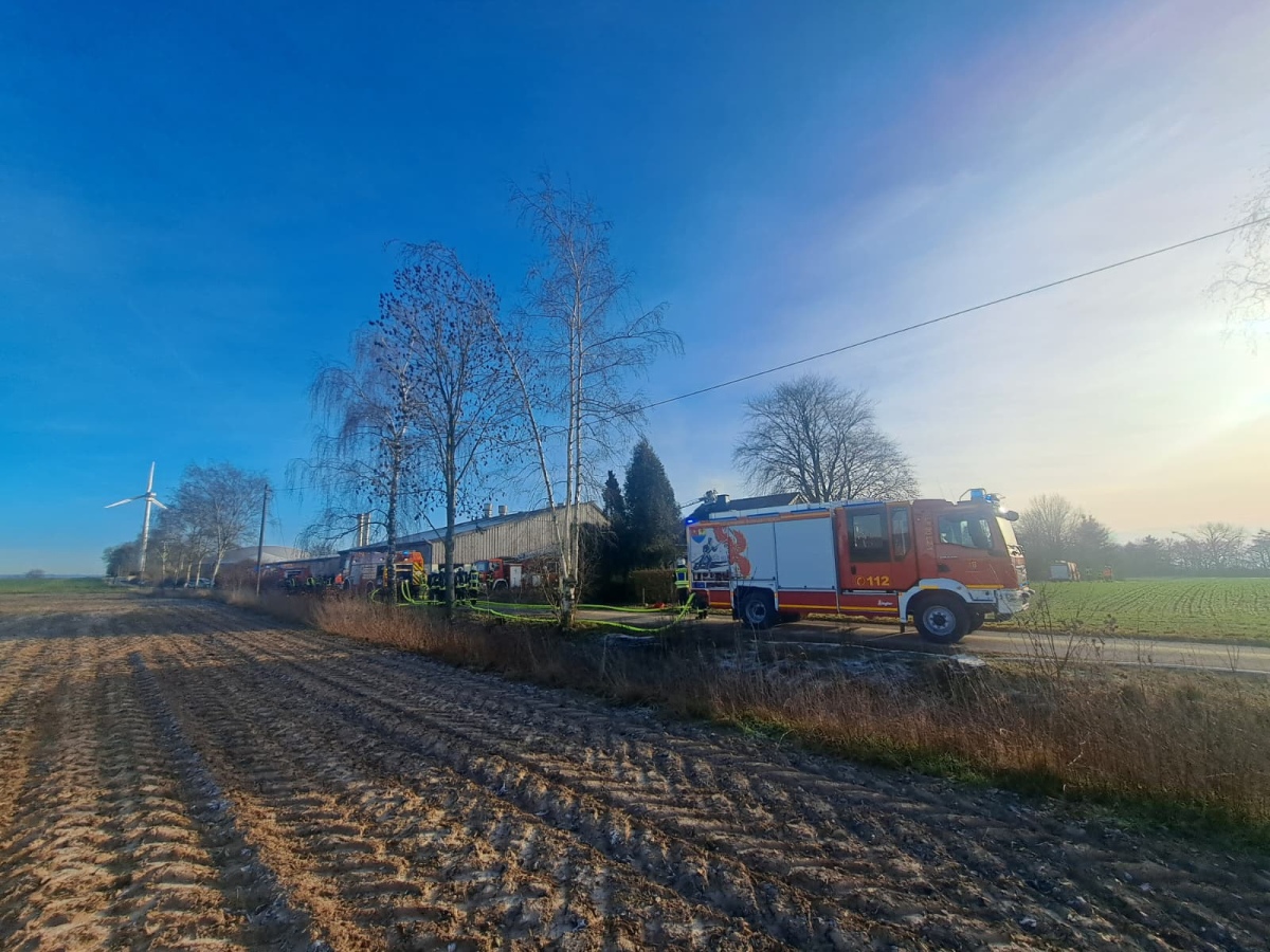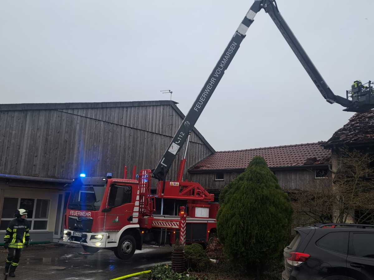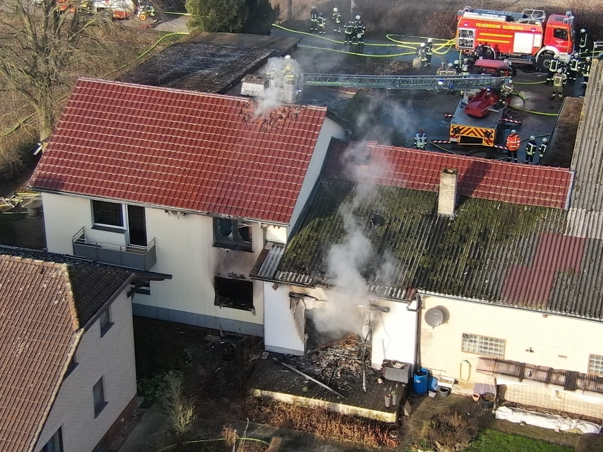 Mit im Einsatz war die Drehleiter mit wasserführendem Fahrzeug aus Warburg. Aufgrund der Größe des Einsatzes übernahm der ELW 2 vom Kreis Höxter die Einsatzleitung. Da mit der Drehleiter aus Warburg bestimmte Dachbereiche nicht erreicht werden konnten, wurde noch ein Teleskopmast von der Feuerwehr Volkmarsen nachalarmiert.