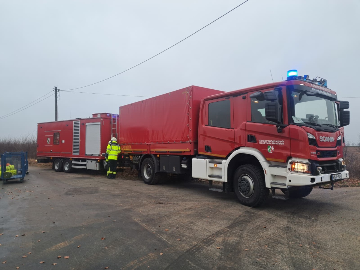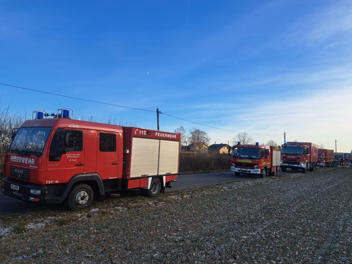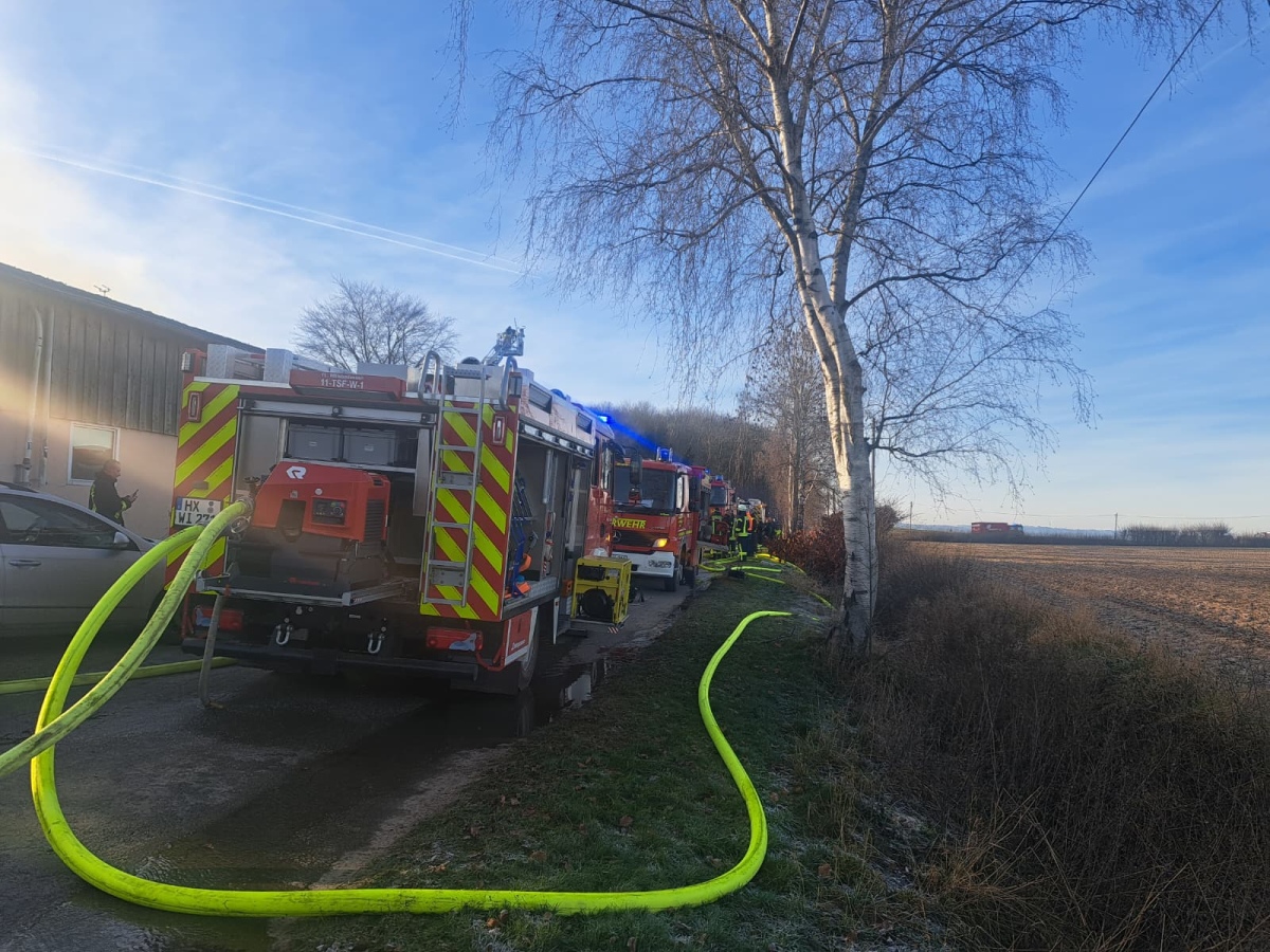Mit im Einsatz war die Drehleiter mit wasserführendem Fahrzeug aus Warburg. Aufgrund der Größe des Einsatzes übernahm der ELW 2 vom Kreis Höxter die Einsatzleitung. Da mit der Drehleiter aus Warburg bestimmte Dachbereiche nicht erreicht werden konnten, wurde noch ein Teleskopmast von der Feuerwehr Volkmarsen nachalarmiert.