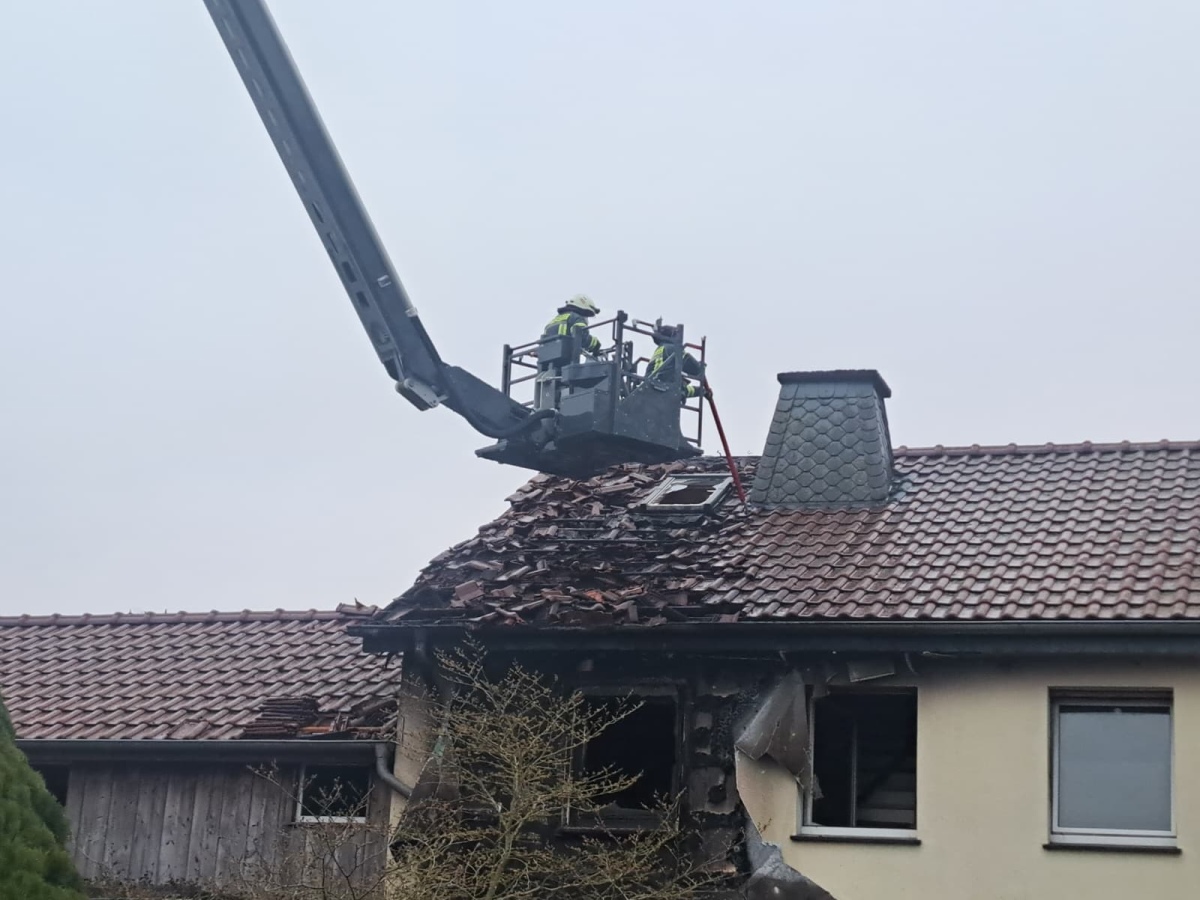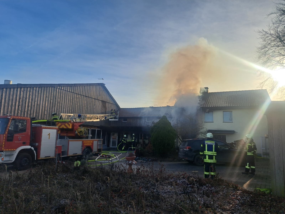 Zahlreiche Feuerwehr-Einsatzkräfte aus dem Südkreis Höxter wurden zunächst zu einem Zimmerbrand in Schönthal alarmiert. Noch auf Anfahrt erhöhte die Leitstelle die Alarmierung dann auf „Feuer 4“ Gebäudebrand. Das Feuer hatte inzwischen auf das komplette Gebäude sowie den Dachstuhl übergegriffen. Aufgrund der vielen benötigten Atemschutzgeräteträger wurden im Laufe des Einsatzes noch einmal weitere Einheiten aus den Städten Willebadessen und Borgentreich nachalarmiert.