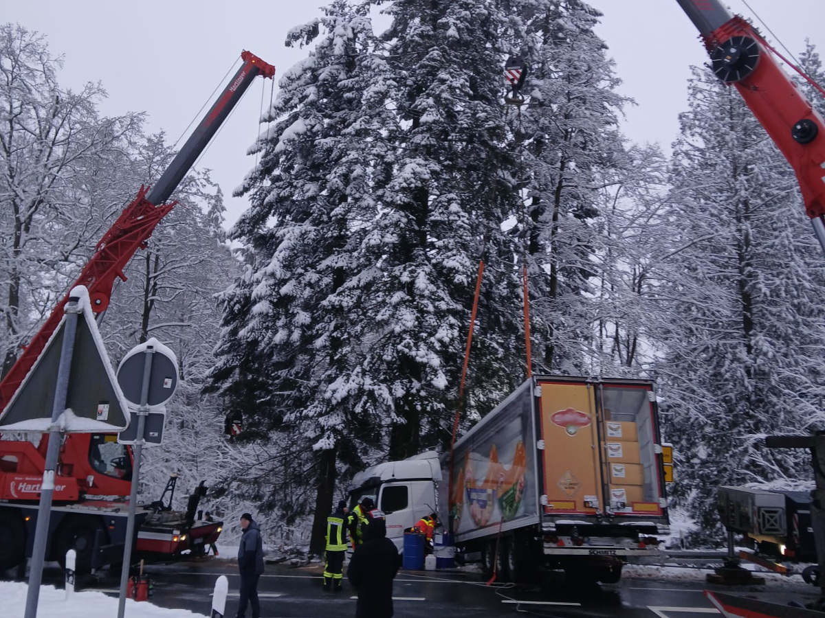 Der Löschzug Willebadessen wurde gemeinsam mit dem Peckelsheimer Einsatzleitwagen zu einem vermeintlichen Verkehrsunfall mit eingeklemmter Person alarmiert. Ein LKW war aufgrund der Witterungsverhältnisse in einen Straßengraben gerutscht. Eine Person war entgegen der Meldung nicht eingeklemmt. Daraufhin konnte der Einsatzleitwagen die Anfahrt abbrechen, die weiteren Maßnahmen wurden durch die Feuerwehrkräfte aus Willebadessen abgearbeitet. Vor Ort war ein Bergungsunternehmen mit zwei Autokränen. Während der Bergungsarbeiten war der Kreuzungsbereich K26/L763 bis 13:00 Uhr voll gesperrt.