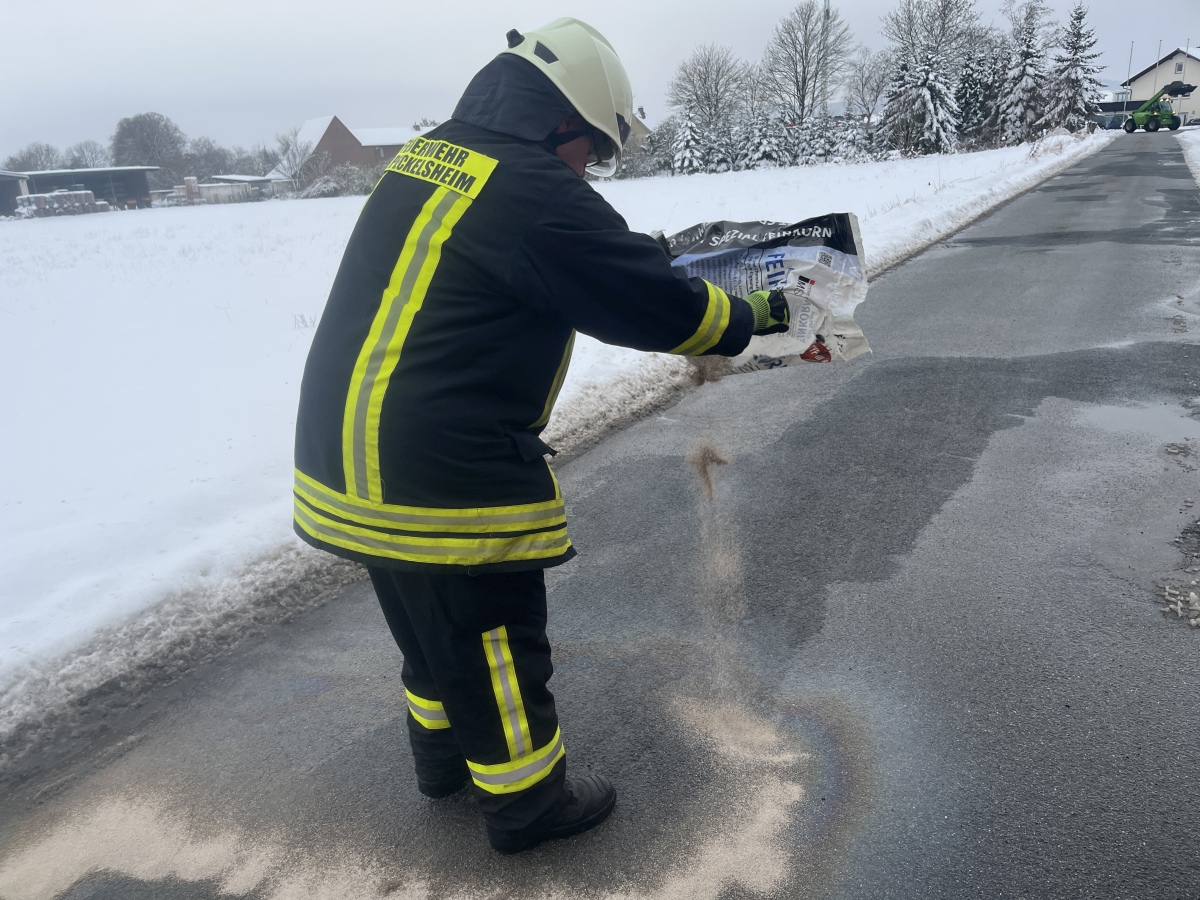 Der Löschzug wurde zu zwei kleinen Ölspuren im Ortsgebiet Peckelsheim alarmiert. Das Öl wurde mit Bindemittel aufgenommen. Mit vor Ort war die Polizei.