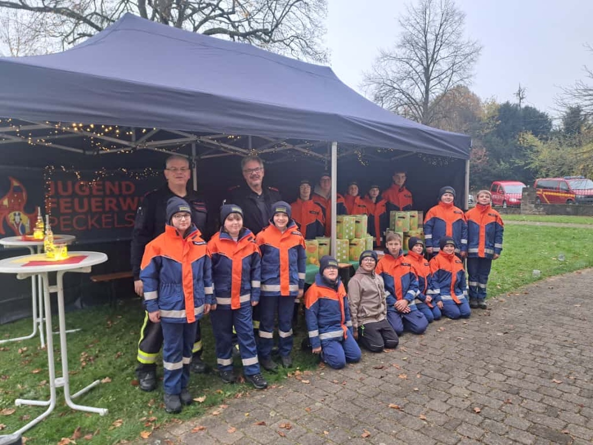 Die Peckelsheimer Jugendfeuerwehr war am gestrigen Samstag in Niesen. Bei der dortigen Veranstaltung, den Lichtmomenten, wird Niesen durch Kerzen, Lichter und Kunst in eine besondere Atmosphäre getaucht. Die Dorfgemeinschaft organisiert die Veranstaltung mit einem Kunsthandwerkermarkt, Musik, kulinarischen Angeboten und künstlerischen Lichtinstallationen. Verkauft wurde dabei der selbst gemachte Apfelsaft.